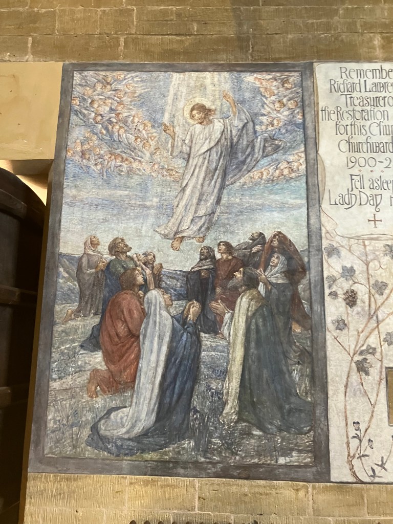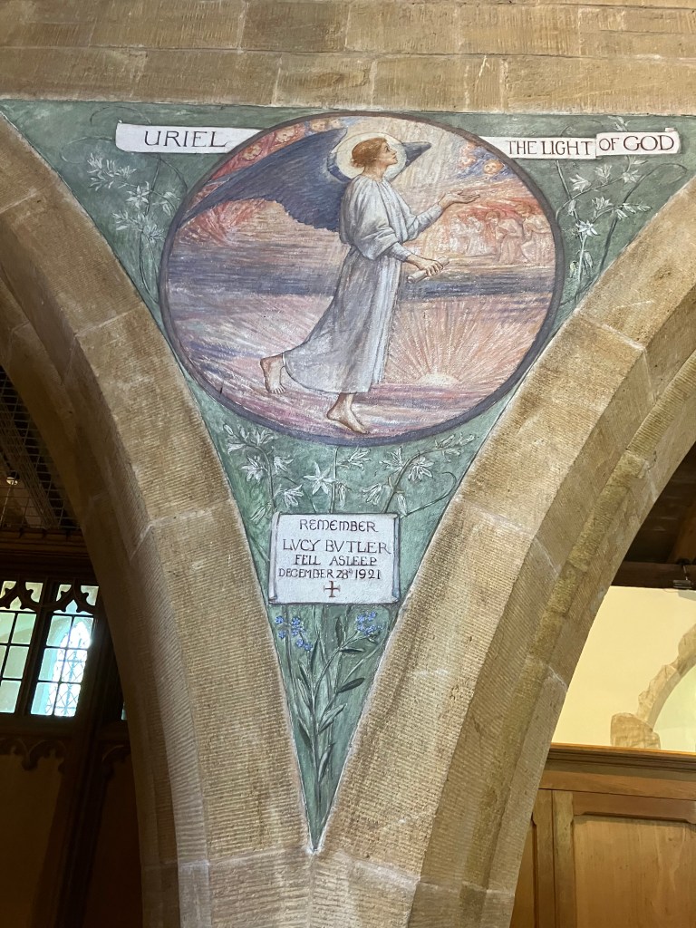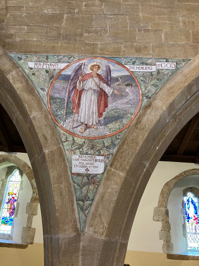 By the time of the “restoration” of St Michael’s Inkpen, Ethel King Martyn was an established painter and illustrator, having been elected Associate of the Royal Society of Printmakers in 1892 and then Fellow in 1902. She had also exhibited at the Royal Academy. Her work at Inkpen was completed in 1910 and remains as beautiful today as it was then.