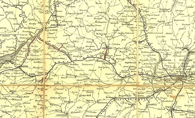 Route of the Great Western Railway, 1850. Public Domaine, via Wikki Commons