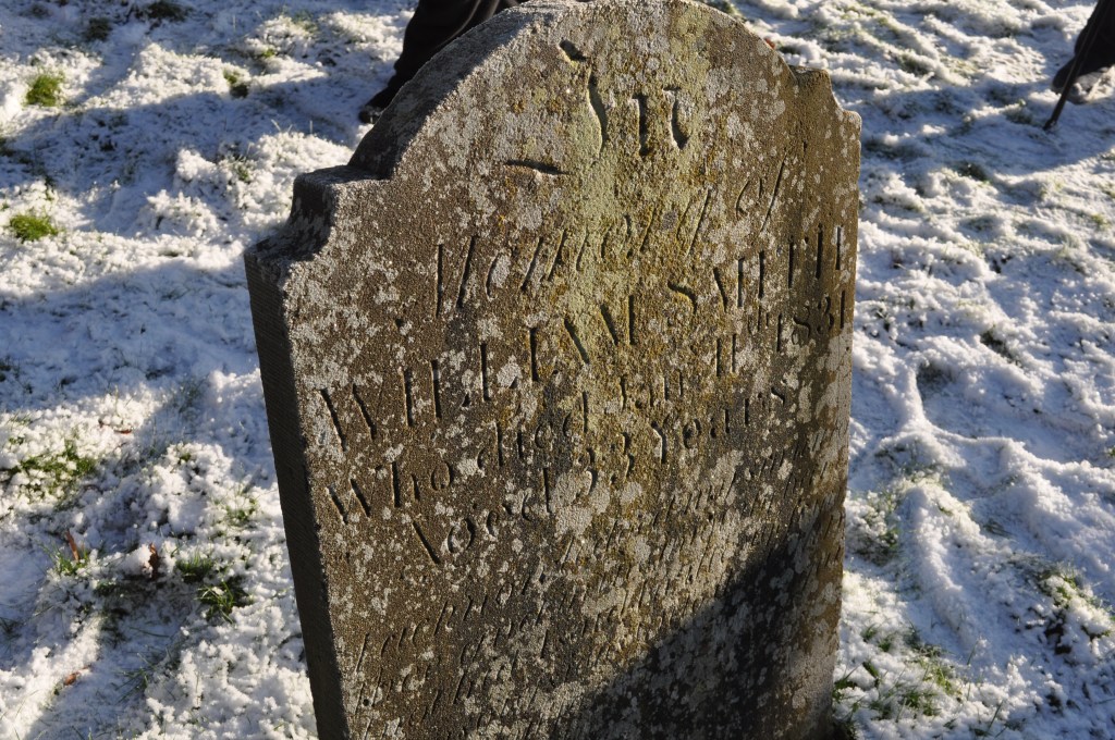 This year, the bright sunlight shone on the lichen covered stone such that William’s name could be read clearly. As his parents were not married at the time of his birth, he is buried under his mother’s name of Smith, in accordance with the custom of the time.