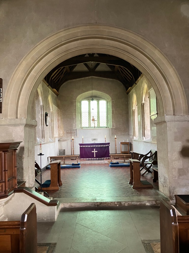 In the Berkshire volume of his series, The Buildings of England, the architecture historian Nikolaus Pevsner, describes St Mark & St Luke’s church at Avington as being, “A memorable little church … Entirely Norman …” so perhaps the crusade-bound knights of my imagination would have seen the very-same church that we see today. Except, that is, for the pulpit and pews, which are Victorian. Also the vestry. And the stained glass, of course.
