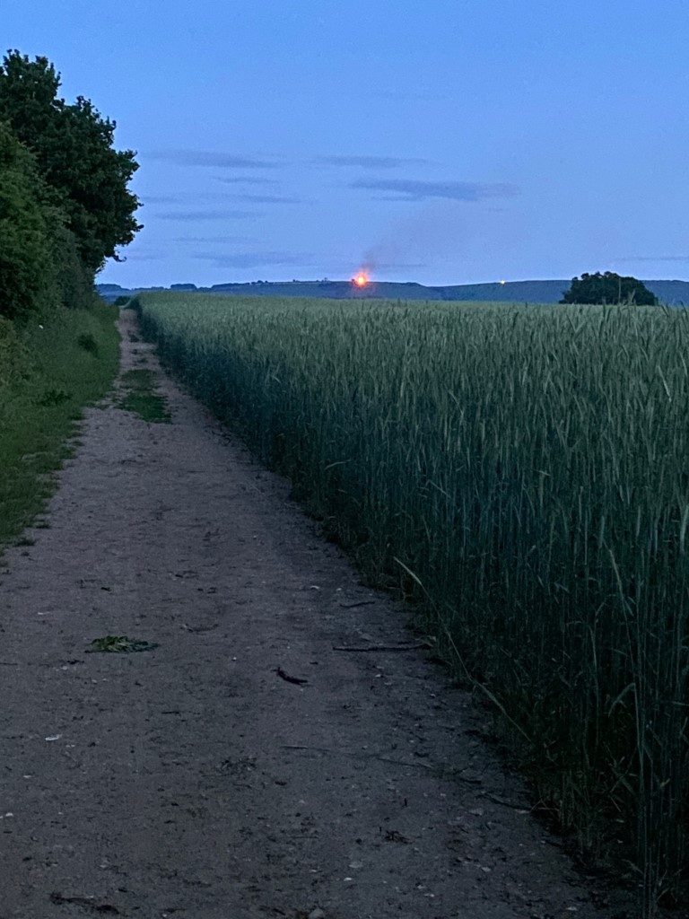 A beacon on Walbury Hill/Inkpen Beacon celebrating the Platinum Jubilee in June 2022